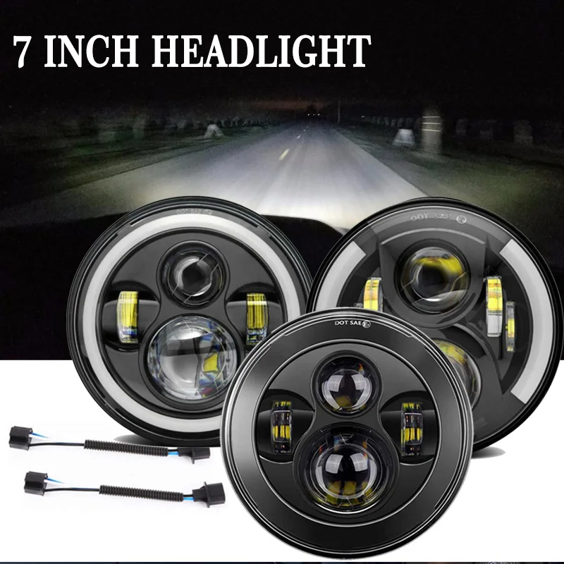 2X 7" inch Round LED Halo Headlight Hi/Lo DRL Beam For Jeep Wrangler JK LJ TJ CJ Lada 4x4 urban Niv