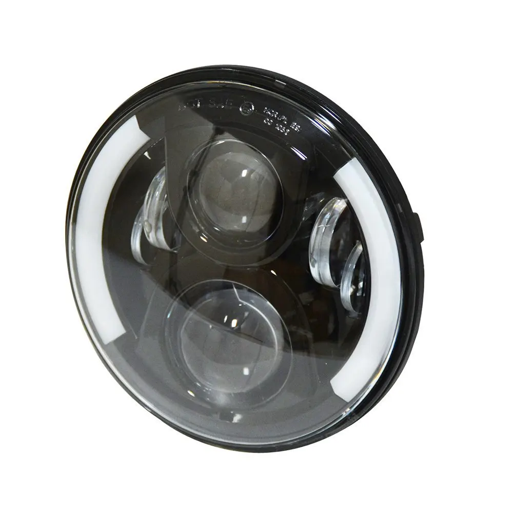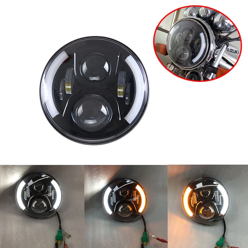 Black/Chrome 7inch Round Motorcycle LED Headlight with DRL Angel eyes Left Right Turn Signal For Ha