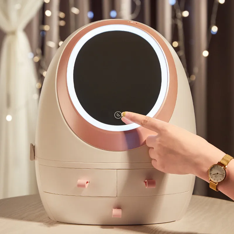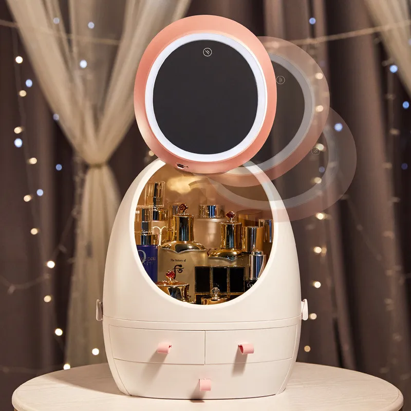 LED Light Mirror Makeup Organizers Portable Drawer-style Cosmetic Storage Box Desktop Skin Care Pro
