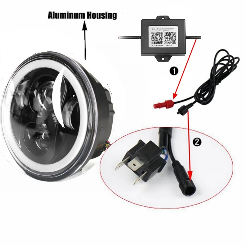 HIGH QUALITY 5-3/4" 5.75" Round LED Projection Headlight RGB Halo DRL with Bluetooth APP Remote for Motorcycle