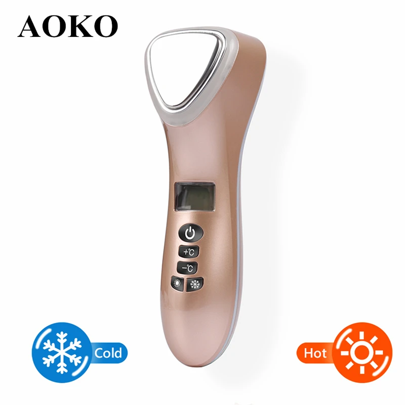 AOKO Ultrasonic Vibration LED Photon Beauty Machine USB Hot Cold Cryotherapy Beauty Device Face Lif